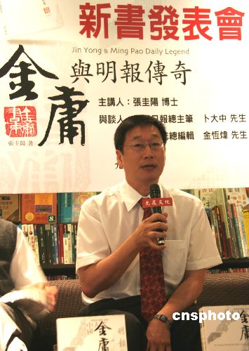 六月九日,《金庸與明報(bào)傳奇》一書(shū)正式在臺(tái)灣發(fā)行。該書(shū)作者、曾任《明報(bào)》主力執(zhí)筆之一的張圭陽(yáng)專(zhuān)程自香港飛抵臺(tái)北,向讀者介紹創(chuàng)作心得。作者:許曉青