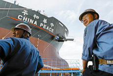 2003年6月,“中國航運(yùn)股份有限公司”向上海外高橋有限公司訂造了兩艘17.5萬噸好望角型散貨船,今天命名交付的“中華和平”號便是其首制船。它比原定日期提前110天完工交船,并將于今天下午啟航向首航目的地、南非理查德灣進(jìn)發(fā)。
