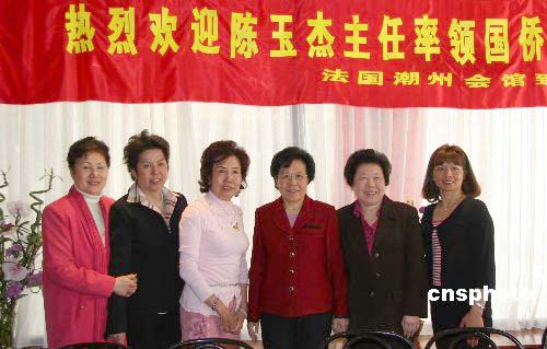 當?shù)貢r間6月9日,國務院僑辦主任陳玉杰一行繼英國、意大利之后到訪法國,開始其歐洲之行的第三站也是最后一站的宣慰僑胞之旅。陳主任在法國潮洲會館參觀了華文學校,并同部分法國僑領舉行了座談。座談結(jié)束后,僑胞紛紛與陳玉杰主任合影。圖為陳玉杰主任(右三)和僑辦國外司副司長朱慧玲(右一)與潮洲會館的女僑領們在一起合影。作者:鐘誠
