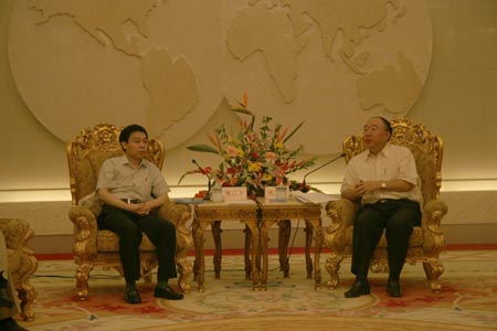 中新網(wǎng)重慶6月13日電(記者 宋方燦 章瑩) 13日上午,重慶市委常委、常務(wù)副市長黃奇帆,市委常委、宣傳部長何事忠在霧都賓館重慶廳會見了“魅力重慶網(wǎng)上行”中國網(wǎng)絡(luò)媒體赴渝采訪團一行。重慶市委外宣辦、市政府新聞辦主任周波出席了會見儀式。會見后,黃奇帆副市長就國內(nèi)外關(guān)注的有關(guān)問題,接受了網(wǎng)絡(luò)媒體的集體采訪。