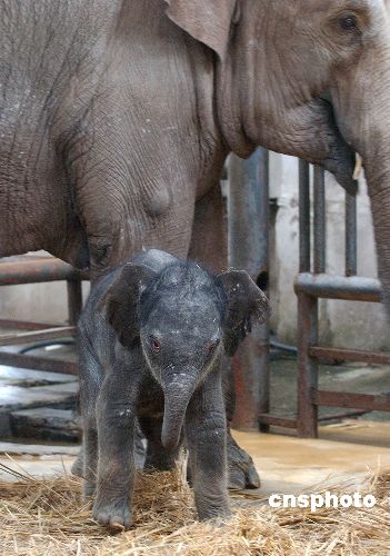 重慶動(dòng)物園二十歲的明星大象伊里六月九日凌晨順利產(chǎn)下一子。小象出生時(shí),高約八十五厘米,重約一百公斤,目前未定名,估計(jì)一周以后可以與游人見(jiàn)面。圖為小象與母親在一起。作者:郭晉嘉