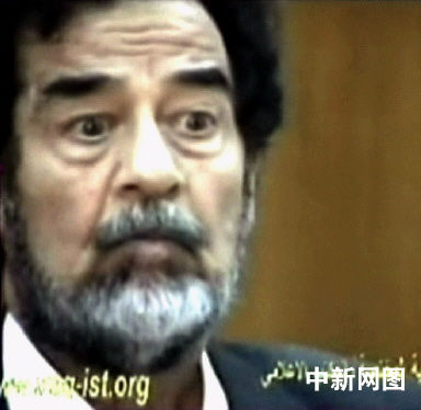 6月13日公布的伊拉克前總統(tǒng)薩達姆在一不明地點接受質詢的電視照片。伊拉克特別法庭表示,一名法官已向薩達姆提出質詢,調查一什葉派穆斯林聚居的村莊里數(shù)十名男子被殺害事件。1982年,薩達姆曾在該村逃過一次暗殺。