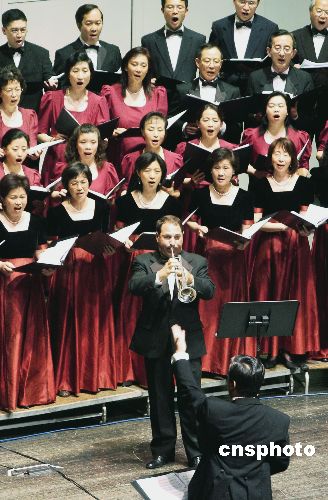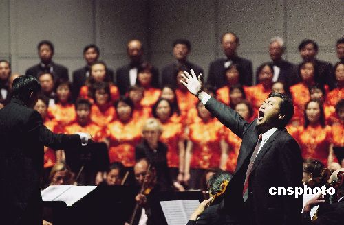 六月十二日,為紀(jì)念抗日戰(zhàn)爭勝利六十周年,美國硅谷愛樂合唱團(tuán),青青合唱團(tuán),圣荷西華人合唱團(tuán),圣荷西知青合唱團(tuán)在美西圣荷西藝術(shù)演出中心聯(lián)合演出《黃河大合唱》。作者:陳鋼