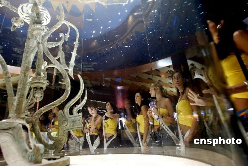 六月十五日,二○○五國際旅游小姐冠軍總決賽的來自七十五個(gè)國家和地區(qū)的旅游形象大使,來到四川省廣漢市,參加二○○五中國四川三星堆國際旅游文化節(jié)暨二○○五國際旅游小姐最具魅力小姐冠軍大賽決賽,各國旅游小姐在參觀三星堆博物館時(shí),被古蜀文明深深吸引。圖為各國佳麗在三星堆博物館館藏文物“神樹”前流連忘返。作者:盛佳鵬