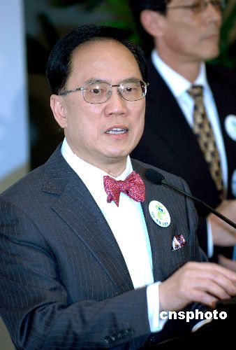 香港十六日自動(dòng)當(dāng)選的行政長官曾蔭權(quán)﹐在當(dāng)日晚舉行記者會(huì)上答記者問。作者:宋吉河