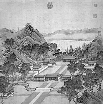 “圓明園四十景圖詠”是乾隆元年1736年,乾隆皇帝令宮廷畫師沈源、唐岱依據(jù)圓明園實(shí)景繪制,由沈源畫房舍,唐岱畫土山樹石。圓明園四十景,是指園內(nèi)獨(dú)成格局的四十處園林景觀,一個景就是一座“園中園”。當(dāng)時圓明、長春、綺春,三園共計(jì)約有百余處景群,但昔日僅繪制此四十景,更突現(xiàn)出此四十景的顯要與華蓋群芳。四十景圖為絹本彩繪,每幅圖的絹心為64×65厘米,連裝池綾邊為83×75厘米,每幅圖配有時任工部尚書大書法家汪由敦代書的乾隆皇帝“四十景詩”,連同“四十景圖”共計(jì)四十對幅,每對幅為左詩右圖。