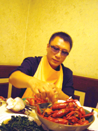 孫紅雷在南京拍片多次,就愛吃南京的大龍蝦,19日中午,特地趕去一家飯店吃龍蝦,開吃前他是談笑風生,龍蝦一上桌,他就一言不發(fā),如入無人之境。眨眼功夫,一盤光了,第二盤剛上,我們以為他會說不要了,哪知孫紅雷竟說“再來兩盤!”看他吃得那么香,一桌人都樂壞了,記者在一邊悄悄估算了一下,孫紅雷這頓一人共吃了四盤90多只龍蝦。完了還執(zhí)意掏錢買了兩大包,說要帶回北京去。