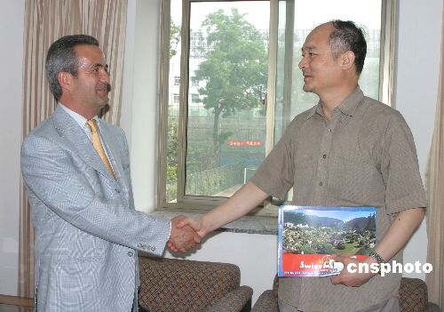 6月23日,國務(wù)院僑辦副主任趙陽會見瑞士提起諾州美利德市“微縮瑞士”公園園長Dominique Vuigner先生。中國深圳著名的“錦繡中華”公園與已有五十年歷史的瑞士提州“微縮瑞士”,通過國僑辦介紹結(jié)成友好園區(qū),將開展中瑞微縮景區(qū)建設(shè)、工藝、管理及旅游方面的交流與合作。作者:田地