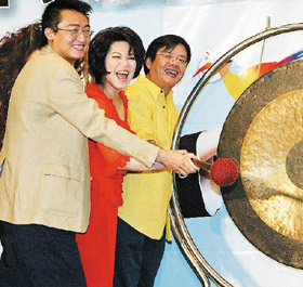 昨天蔡琴當(dāng)起了媒婆,帥哥律師謝震武擔(dān)任見(jiàn)證人,見(jiàn)證果陀劇團(tuán)與大陸上海星世代娛樂(lè)公司結(jié)緣。蔡琴與果陀藝術(shù)總監(jiān)梁志民,還有上海星世代娛樂(lè)董事長(zhǎng)徐毅簽約,將“跑路天使”引進(jìn)內(nèi)地,新名稱“跑路救天使”引起大陸一陣狂熱,北京、上海共5場(chǎng)演出,目前已經(jīng)開放售票,據(jù)了解,票房比蔡琴去年的個(gè)唱還暢銷,而4萬(wàn)人次的演出也將挑戰(zhàn)蔡琴的身體狀況。蔡琴表示,由于視力不佳,她無(wú)法與舞臺(tái)上的其它演員直接對(duì)戲,所以必須彩排更多次,一個(gè)人不斷重復(fù)練習(xí),將所有的走位及對(duì)話統(tǒng)統(tǒng)都背起來(lái),比起一般正常情況下演出,更加辛苦,蔡琴開玩笑說(shuō):“我的票價(jià)要調(diào)漲啦!”
