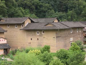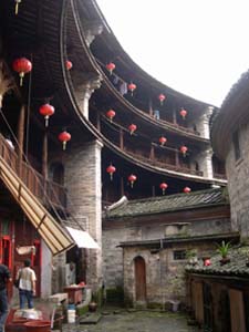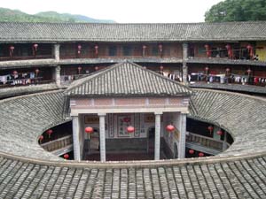 永定縣境內(nèi)的大型方型、圓型土樓有8000余座,最壯麗堂皇的、最有代表性的是洪坑村振成樓。這一“土樓王子”按八卦觀念結(jié)構(gòu)建造,卦與卦之間設(shè)防火墻,坐北朝南,調(diào)節(jié)陰陽。每卦與內(nèi)層一樓采用北方四合院格式。全樓的設(shè)施布局既有蘇州園林的印跡,也有古希臘建筑的特點(diǎn)?胺Q中西合璧的建筑奇葩。1995年它的建筑模型與北京天壇作為中國南北圓形建筑代表參加了美國落杉磯世界建筑展覽會,引起了轟動(dòng),一直被稱為“世界上獨(dú)一無二的神話般的山區(qū)土樓建筑”。