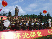 中新社長沙六月二十五日電(鄧霞周海清)為紀(jì)念毛澤東親手創(chuàng)建中共韶山特別支部八十周年,大型音樂舞蹈史詩《東方紅》交響合唱音樂會,今日在毛澤東的家鄉(xiāng)湖南韶山進行首次實景演出。四千余人在毛澤東銅像下聆聽那些傳唱了半個世紀(jì)的熟悉的經(jīng)典旋律。