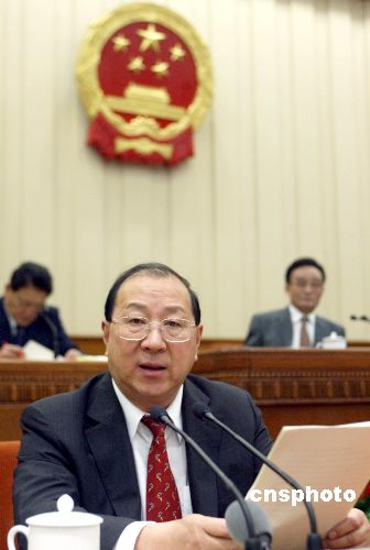 圖:金人慶作關(guān)于二○○四年中央決算的報(bào)告