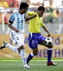 中新網(wǎng)6月29日電 2005世青賽半決賽28日在荷蘭打響,在一場南美德比中,衛(wèi)冕冠軍巴西隊和阿根廷隊聯(lián)手為球迷送上了一場精彩的比賽。最終,憑借著效力于巴塞羅那的新星梅西的獨中兩元,阿根廷以2比1險勝巴西,晉級決賽。