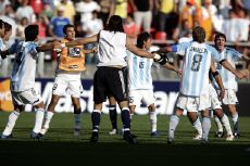 在后面的比賽中,雙方都顯得很謹慎,也都遲遲沒有進球。眼看90分鐘比賽就要以1比1結(jié)束而進入加時賽的時候,阿根廷隊卻由梅西突破后妙傳扎巴萊塔,后者攻入了制勝一球,幫助阿根廷以2比1淘汰巴西隊。