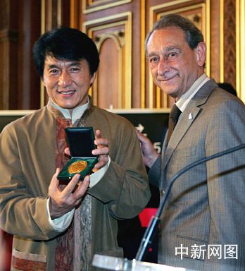 中新網(wǎng)6月29日電 據(jù)光華日報(bào)報(bào)道,法國巴黎市長德拉諾今天在市政廳頒與成龍巴黎市榮譽(yù)勛章,表彰這位香港動作巨星的演藝成就及他的笑容。
