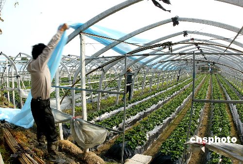 2005年6月29日,據(jù)財政部部長金人慶近日披露,到目前為止,已經(jīng)明確免征農(nóng)業(yè)稅的省份新增山西、內(nèi)蒙古等19個,加上去年已經(jīng)免征和基本免征農(nóng)業(yè)稅的8個省份,2005年可提前實現(xiàn)免征農(nóng)業(yè)稅的省份將達(dá)到27個,其余的河北、山東、廣西、云南4省(區(qū))2005年有217個縣(市)也將免征農(nóng)業(yè)稅。今年享受免征農(nóng)業(yè)稅的農(nóng)民將達(dá)到8億人。圖為寧波農(nóng)村一蔬菜專業(yè)戶正在為大棚更換農(nóng)膜。作者:張和平