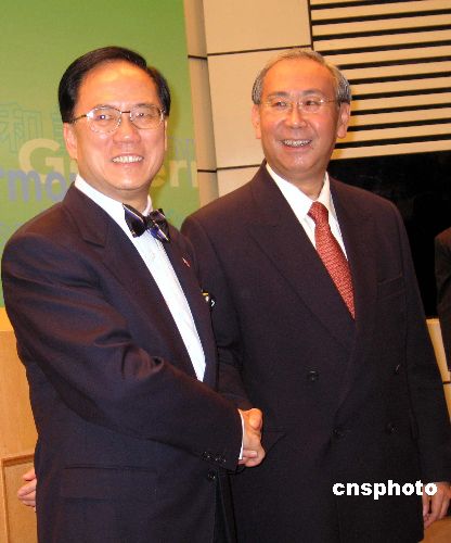 依照香港基本法有關(guān)規(guī)定,根據(jù)行政長官曾蔭權(quán)的提名,國務(wù)院30日決定任命許仕仁(右)為香港政務(wù)司司長。作者:譚達(dá)明