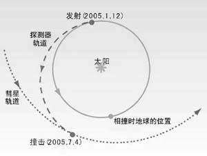 按計(jì)劃,探測器在7月2日下午進(jìn)行最后一次軌道調(diào)整,然后就釋放撞擊器。預(yù)計(jì),撞擊器將在太平洋時間7月3日深夜11點(diǎn)左右(北京時間7月4日下午1時52分),以每小時3.7萬公里的速度“轟”上坦普爾1號的彗核,造成彗核表面的冰雪、塵埃等濺起,好比在太空中放出一個大“焰火”。