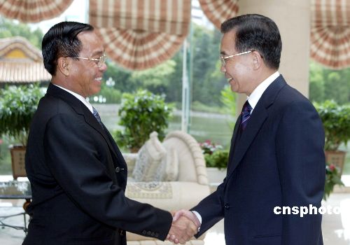七月四日,中國國務(wù)院總理溫家寶在昆明會見前來參加大湄公河次區(qū)域經(jīng)濟合作第二次領(lǐng)導(dǎo)人會議的緬甸總理梭溫。作者:廖文靜