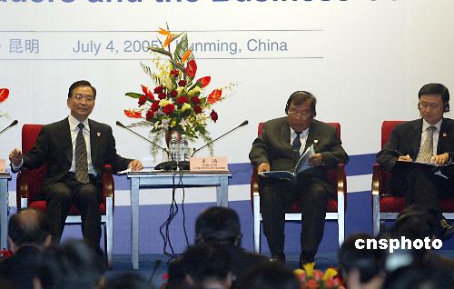 七月四日,中國國務院總理溫家寶在昆明與參加大湄公河次區(qū)域經(jīng)濟合作第二次領(lǐng)導人會議的工商界代表舉行對話會。作者:廖文靜