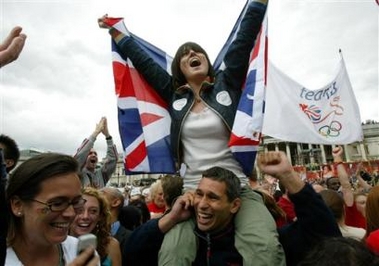 中新網(wǎng)7月6日電 在7月6日晚間進(jìn)行的第30屆奧運(yùn)會的主辦城市的選舉中,來自英國的倫敦力壓法國首都巴黎,成功獲得該城市歷史上的第三次奧運(yùn)會主辦權(quán)。賽后,倫敦居民喜出望外,紛紛走上街頭慶祝勝利。