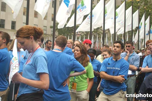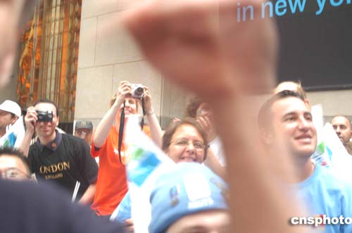 中新網(wǎng)紐約七月六日電 當(dāng)?shù)貢r(shí)間七月六日清晨,雖然聚集在曼哈頓洛克菲勒廣場(chǎng)等待申奧佳音的紐約市民未能如愿為自己的城市歡慶,但是他們祝福成為第三十屆奧運(yùn)會(huì)主辦城市的倫敦。