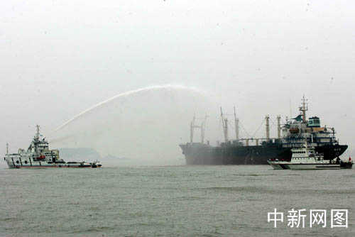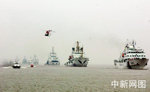 中新網(wǎng)7月7日電 7日上午10時(shí)51分,2005年?yáng)|海聯(lián)合搜救演習(xí)正式拉開(kāi)序幕。這是一次參演科目最多、參與隊(duì)伍最廣、救助力量最強(qiáng)的海上綜合演習(xí)。