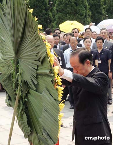 臺(tái)灣新黨主席郁慕明率領(lǐng)的臺(tái)灣新黨“民族之旅”訪問團(tuán)七月七日拜謁廣州黃花崗七十二烈士陵園。作者:毛建軍