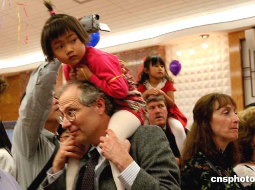 據(jù)美國星島日?qǐng)?bào)報(bào)道,10日,一百多個(gè)領(lǐng)養(yǎng)中國兒童的美國家庭,獲邀出席了駐舊金山市中領(lǐng)館特別為他們準(zhǔn)備的聯(lián)歡會(huì)。中領(lǐng)館總領(lǐng)事彭克玉會(huì)上向這些家庭表示了感謝,并指出,今年已經(jīng)是中領(lǐng)館第六年舉辦這樣的活動(dòng),而自從13年以前中國通過領(lǐng)養(yǎng)法并與國際法規(guī)接軌以后,在過去的十年間,已經(jīng)超過5萬個(gè)中國兒童被領(lǐng)養(yǎng),當(dāng)中80%的領(lǐng)養(yǎng)家庭來自美國。