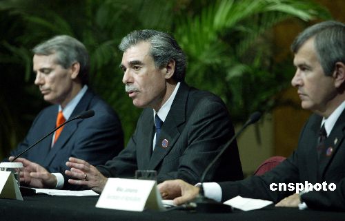 七月十一日晚,美國商務(wù)部長古鐵雷斯、美國貿(mào)易代表波特曼、美國農(nóng)業(yè)部長約翰斯在北京召開記者會,就第十六屆中美商貿(mào)聯(lián)委全會情況回答記者提問。作者:廖文靜