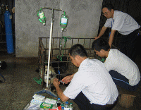 下午兩點三十分,記者趕到現(xiàn)場時,飼養(yǎng)員江安全花了很長時間才將沉睡中的“美美”輕輕喚醒,五位員工設(shè)法引導(dǎo)“美美”走進一個鐵籠中,用繩索將其身體和四肢固定,用鉗夾幫“美美”修剪長長的指甲,并小心地修去“美美”前肢內(nèi)側(cè)腕部的一片茸毛,抽取了五十毫升血液,派專人送往醫(yī)院進行多項指標(biāo)檢測,然后在此部位吊射中成藥及西藥藥液,主要作用是抗菌消炎、支持能量營養(yǎng)、糾正休克、避免脫水。