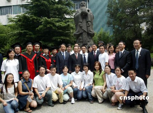 新黨主席郁慕明一行與中國(guó)人民大學(xué)學(xué)生們?cè)诳鬃酉袂昂嫌。作者:史?br/>