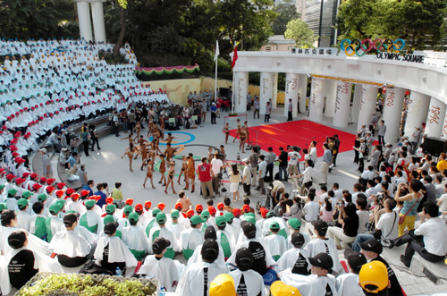 11日,香港舉行奧林匹克廣場(chǎng)揭幕禮。位于香港公園的廣場(chǎng)命名為奧林匹克廣場(chǎng),是香港推廣奧運(yùn)精神的地標(biāo),將來會(huì)有很多重要體育活動(dòng)在此舉行。國際奧委會(huì)主席羅格在港協(xié)暨奧委會(huì)會(huì)長霍震霆的陪同下,為廣場(chǎng)啟用揭幕。(新華社圖)