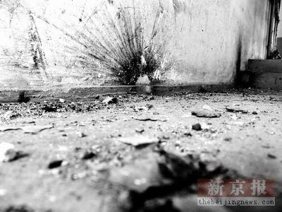 昨天下午,事發(fā)現(xiàn)場被炸的情景還保留著。爆炸的地點位于第303干部學(xué)校宿舍樓一樓的樓道門口,在樓道里遍地都散落著土屑和被震落的墻皮。在樓道東墻和西北墻角上共有3處爆炸物爆炸時留下的黑色痕跡。樓道的南墻被炸開一條長三四十厘米、寬約一厘米的裂縫。