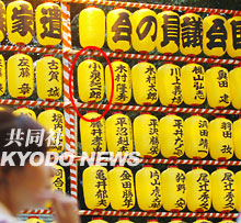 中新網(wǎng)7月15日電 據(jù)日本共同社報(bào)道,日本首相小泉純一郎為從13日開始的靖國(guó)神社主辦的廟會(huì)供奉了1萬(wàn)日元的燈籠費(fèi),寫有小泉名字的燈籠懸掛在廟會(huì)上。
