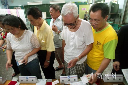 7月16日,中國國民黨主席選舉在全臺601個投票所展開。眾多國民黨黨員前往投票所投票。中新社記者 盛佳鵬