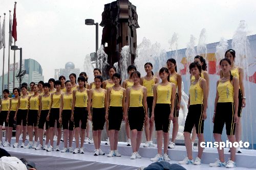 七月十六日,經(jīng)過兩個月的報名和海選,第四屆南方新絲路模特大賽在廣州正佳廣場舉行模特訓練營開營儀式。圖為六十多位通過海選的佳麗集體亮相。作者:劉衛(wèi)勇