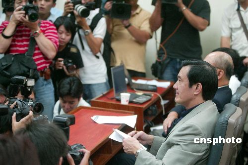七月十六日晚,中國國民黨主席選舉揭曉,臺北市長馬英九高票當(dāng)選。圖為馬英九在臺北國民黨中央黨部記者會(huì)上發(fā)表獲勝感言。作者:盛佳鵬