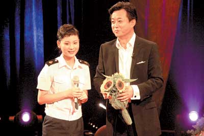 在小品《如此包裝》中,給趙媽伴舞的演員中有一個(gè)就是朱軍的妻子譚梅。昨天這個(gè)特殊的日子,主持人朱軍“假公濟(jì)私”安排了自己的妻子也出來(lái)說(shuō)兩句,這也是他們夫婦首次在節(jié)目中亮相。譚梅給趙媽獻(xiàn)上的是五枝盛開的向日葵,她說(shuō):“希望趙媽在天堂里永遠(yuǎn)年輕,笑口常開!(張學(xué)軍)
