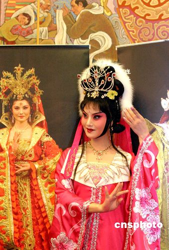 中國(guó)京劇院與西藏自治區(qū)藏劇團(tuán)聯(lián)合創(chuàng)辦演出的京劇、藏戲《文成公主》,擬于八月二十八日在拉薩舉行的西藏自治區(qū)成立四十周年慶典活動(dòng)中首演。藏戲《文成公主》作為八大經(jīng)典藏劇之一,早已享譽(yù)劇壇。此次藏漢聯(lián)手創(chuàng)排《文成公主》,將在注重京劇、藏戲美學(xué)特征的基礎(chǔ)上,強(qiáng)調(diào)兩種戲曲藝術(shù)的兼顧與融合,并賦予作品新的時(shí)代精神。圖為七月十八日在人民大會(huì)堂舉辦的京劇、藏戲《文成公主》新聞發(fā)布會(huì)上文成公主的扮演者鄧敏正在表演該劇的精彩片段。作者:張勤