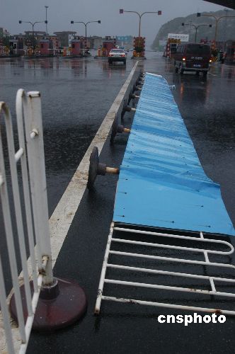 7月18日17時30分左右,“海棠”風暴將福州至泉州高速公路入口處的隔欄掀翻在地。作者:鄭祚聲