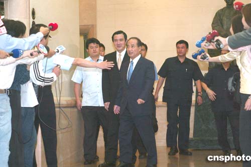 王馬座車上午幾乎同時抵達國民黨,兩人下車握手后,同時進入黨中央。對于媒體的詢問,兩人微笑以對,沒有任何發(fā)言。
