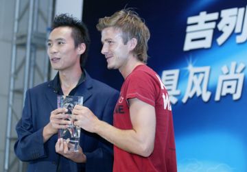 在他談到對(duì)“吉列-皇馬最具風(fēng)尚球迷評(píng)選”決賽的三個(gè)候選人的看法時(shí),他說(shuō):“如果你的球迷不僅僅能夠欣賞你踢球的動(dòng)作,也能夠理解你的個(gè)人風(fēng)尚,這對(duì)于一個(gè)球員來(lái)說(shuō)真是太棒了!”之后他為由在場(chǎng)媒體評(píng)委選出的最具風(fēng)尚的球迷頒發(fā)了獎(jiǎng)杯。據(jù)悉此前貝克漢姆剛剛在“皇馬中國(guó)行”官方網(wǎng)站上舉行的“吉列-皇馬最具風(fēng)尚球星評(píng)選”中獲得了最具風(fēng)尚球星的稱(chēng)號(hào),并且在中央電視臺(tái)的《天下足球豪門(mén)周-皇家馬德里專(zhuān)場(chǎng)》中接受了吉列公司市場(chǎng)總監(jiān)謝冰先生的頒獎(jiǎng),因此由他來(lái)給最具風(fēng)尚的球迷頒獎(jiǎng),顯然是順理成章。