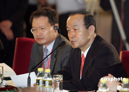 韓國(guó)代表團(tuán)團(tuán)長(zhǎng)、韓國(guó)外交通商部次官補(bǔ)宋旻淳七月二十六日在北京釣魚(yú)臺(tái)國(guó)賓館芳菲苑舉行的朝核問(wèn)題六方會(huì)談上發(fā)表致辭。作者:毛建軍
