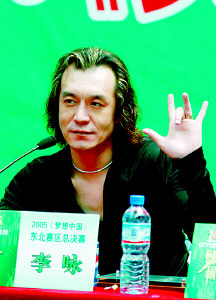 中新網(wǎng)7月27日電 據(jù)沈陽晚報(bào)報(bào)道,昨日,2005《夢(mèng)想中國》東北賽區(qū)總決賽開賽,央視名嘴李詠以活動(dòng)總策劃人的身份來沈當(dāng)評(píng)委。在媒體見面會(huì)上,一貫愛耍酷的李詠始終以墨鏡造型示人。當(dāng)有記者示意其摘下墨鏡給個(gè)“全景”時(shí),身旁工作人員代其解釋他連日來的奔波勞累,說其滿眼布滿血絲。好在李詠還算“聽話”,但卻只給攝影記者“5秒鐘”黃金時(shí)間。隨后,李詠用他靈活的手指變換著他獨(dú)具個(gè)性的數(shù)字造型。要說“5”還算正常,那么,他那“4”和“3”的造型可真是他的獨(dú)創(chuàng)了,好在“3”本來就是《非常6+1》的特色之一。