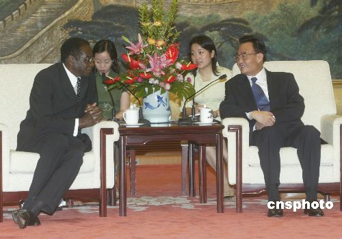 圖:吳邦國會見津巴布韋總統(tǒng)穆加貝