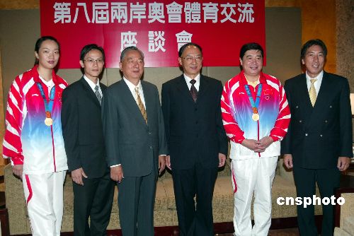 是次座談會(huì),兩岸各有十人參與。座談會(huì)前,臺(tái)灣前射擊好手杜臺(tái)興手托大陸射擊隊(duì)總教練王義夫胸前的奧運(yùn)金牌仔細(xì)端詳,并幽默地對(duì)記者說(shuō):“我老是被他(王義夫)‘干掉’!”曾奪得雅典奧運(yùn)會(huì)男子跆拳道六十八公斤級(jí)跆拳道銀牌、現(xiàn)任臺(tái)“立法委員”的黃志雄,與大陸兩屆奧運(yùn)女子六十七公斤級(jí)金牌得主陳中是老相識(shí),交談甚歡。