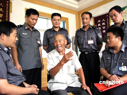 7月28日,83歲的抗日老英雄季長青(前中)來到山東棗莊市臺(tái)兒莊區(qū)公安分局泥溝派出所,為民警們上革命傳統(tǒng)教育課。季長青19歲參加抗日游擊隊(duì),后來加入了八路軍,日軍投降后,他跟隨大軍南下,參加過渡江戰(zhàn)役和解放上海的戰(zhàn)役。由于他作戰(zhàn)勇敢,多次立功受獎(jiǎng),在1947年光榮地加入了中國共產(chǎn)黨,自1953年從部隊(duì)轉(zhuǎn)業(yè)回到家鄉(xiāng)泥溝鎮(zhèn)東黃莊村后,便利用各種形式向青少年及當(dāng)?shù)氐母刹咳罕娏x務(wù)宣傳當(dāng)年抗日的故事,至今義務(wù)宣傳已達(dá)50多年。作者:賈禮章