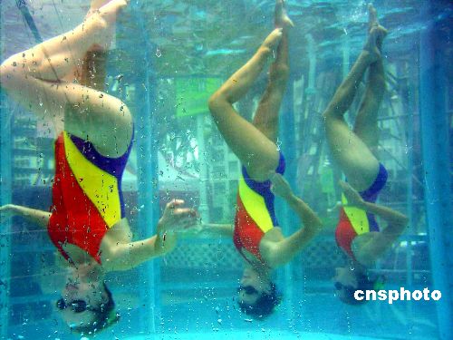 “黃埔夏日跳躍水世界”預(yù)演于29日在香港舉行,多位澳洲好手呈獻(xiàn)世界級(jí)花式跳水表演。圖為優(yōu)美花式韻律泳表演。作者:彭兆輝