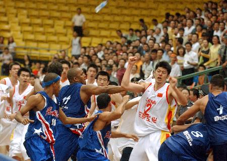 29日晚中國與波多黎各隊的比賽進行到離比賽結(jié)束還有1分29秒時,波多黎各隊4號球員曼紐爾對易建聯(lián)惡意犯規(guī),結(jié)果導致雙方球員在賽場內(nèi)群毆。國際籃聯(lián)最終決定給予雙方全部球員開除出場的處罰,但比賽結(jié)果還保留,中國隊91:80獲勝。